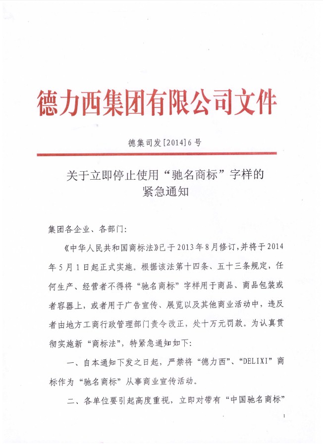 關于立即停止使用“馳名商標”字樣的緊急通知